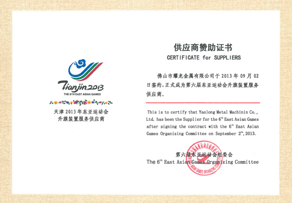 | 10月6日晚,第六届东亚运动会在天津体育馆拉开帷幕。在盛大的开幕仪式上,作为开幕升旗的主旗杆及各大比赛场馆的颁奖升旗旗杆供应商,耀龙旗杆继续大放异彩!耀龙更成为本届东亚运动会的赞助商之一。 |