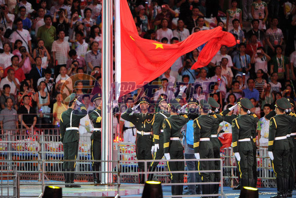 北京时间8月12日晚20时,2011年第二十六届世界大学生夏季运运会开幕式仪式正式开始。来自152个国家和地区大学生体育代表团、一万两千多名运动员相聚在深圳,这场属于全世界年轻人的盛会,也将再一次写下绚丽的五彩华章。自北京奥运,上海世博,广州亚运到今天的世界大运会开幕,耀龙旗杆一次又一次见证历史的时刻,正如强大的祖国屹立在世界的舞台!