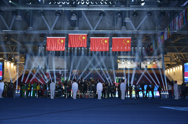 2015年第53届世界乒乓球锦标赛在苏州隆重举行! 中国选手取得优异成绩,分别获得男子单打、女子单打、男子双打、女子双打冠军。耀龙颁奖旗凭着先进稳定的系统,卓越的品质,和参与多个世界级赛事颁奖升旗项目的丰富经验,成为本届世乒赛指定颁奖升旗系统,为世界冠军颁奖升旗。耀龙将全力打造全球智能升旗系统的领导者!