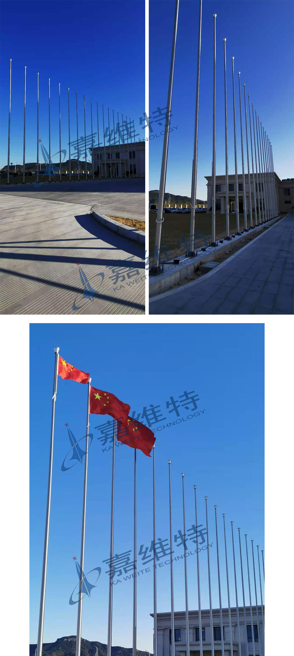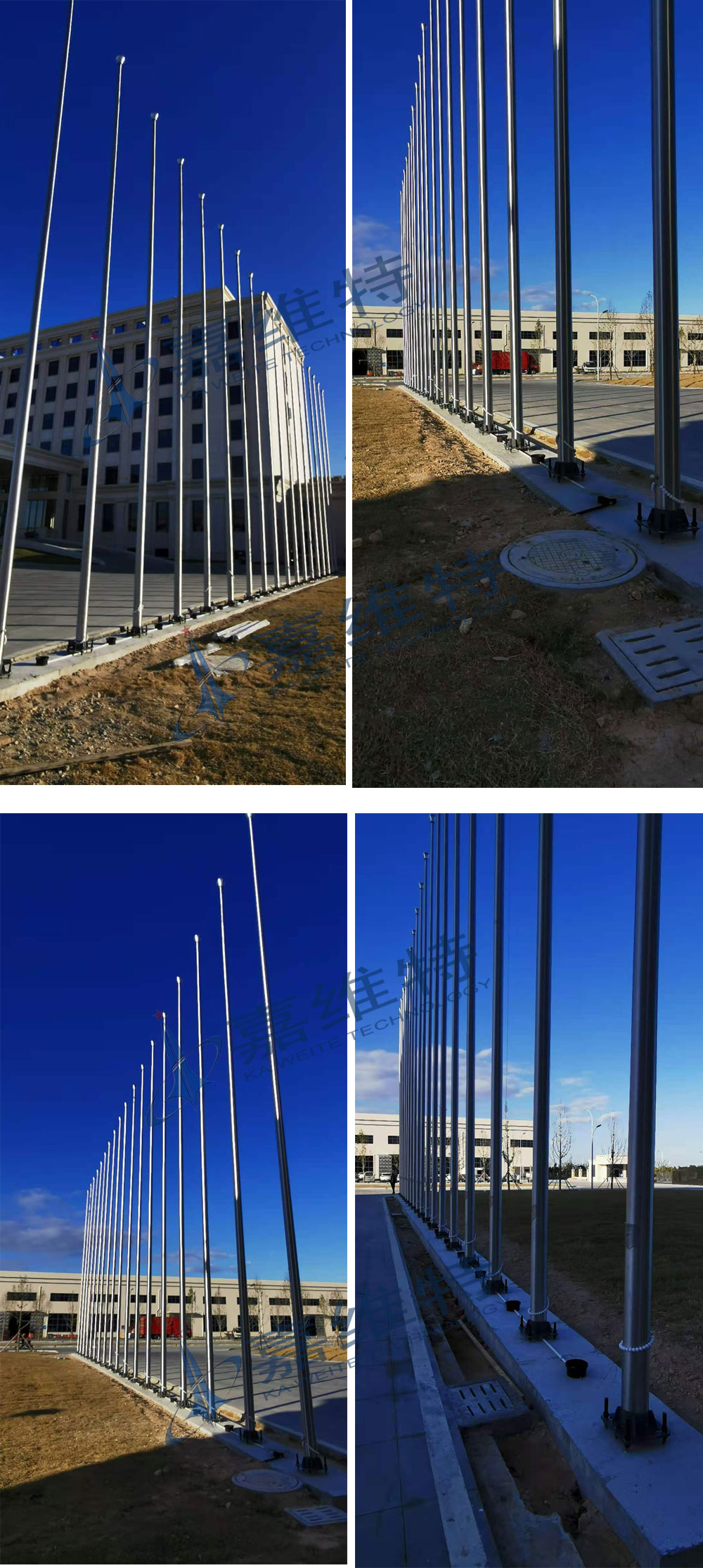 无锡嘉维特与浙江东音合作,为其安装了39支不锈钢锥形旗杆。